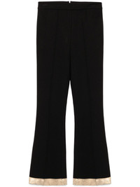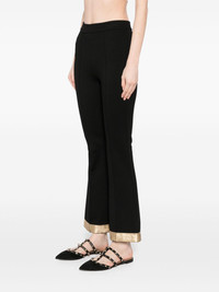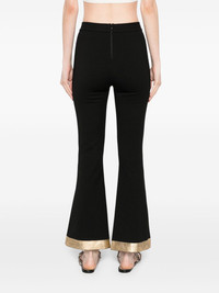 gold-hem flared trousers Highlights - Black - Rear zip fastening - Stretch-jersey - No pockets Imported Composition Polyester 100% SIZE & FIT Model measurements Height 5 ft 9 in(1.76 m) Bust/Chest 31.1 in(79 cm) Hips 35.03 in(89 cm) Waist 24.4 in(62 cm) FittingInformation Designed with a flared hem, these trousers allow for a close fit at the waist with a slim fit over the leg and widening towards the hem Made from a midweight non-stretch fabric, this piece offers minimal elasticity when worn