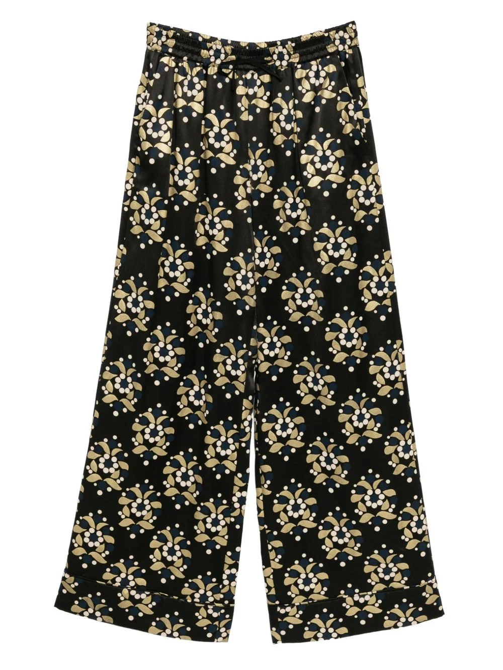 silk wide-leg trousers Highlights - Black - Elasticated drawstring waistband - Two side slash pockets - All-over graphic print Imported Composition Silk 100% Washing instructions Dry Clean Only