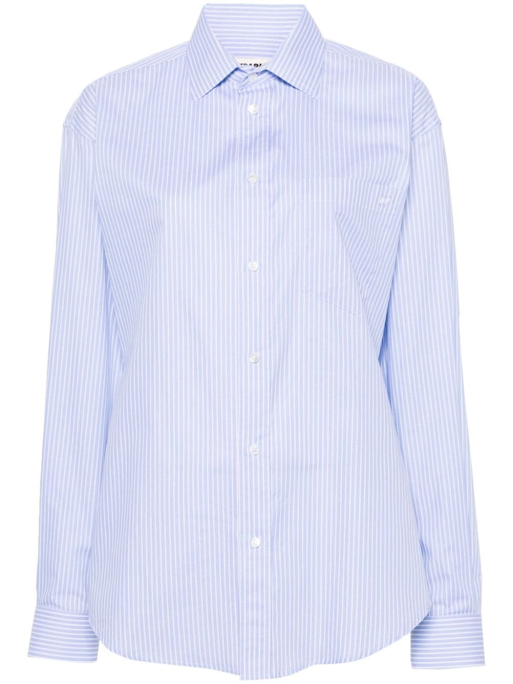 Anne striped cotton shirt Highlights - Light blue/white - Cotton - Poplin texture - Vertical stripe pattern - Spread collar - Long sleeves with buttoned cuffs - Chest patch pocket - Embroidered logo at the chest - Curved hem - Front button fastening Made in Italy Composition Cotton 100% SIZE & FIT Model measurements Height 5 ft 9 in(1.76 m) Bust/Chest 31.88 in(81 cm) Hips 35.43 in(90 cm) Waist 24.8 in(63 cm) FittingInformation Designed for a slim fit that sits just away from the body offering a close yet comfortable fit Made from a midweight non-stretch fabric This piece fits true to size – take your usual size