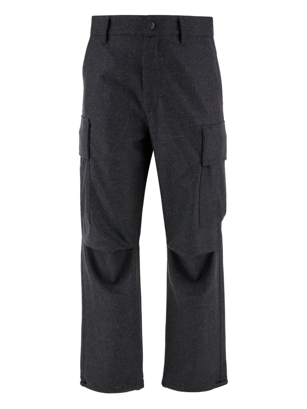 cargo-pocket wool trousers Highlights - Dark grey - Virgin wool - Side cargo pockets - Button fastening - Flap pockets Made in Italy Composition Virgin Wool 100% Washing instructions Read Manufacturer Guidelines
