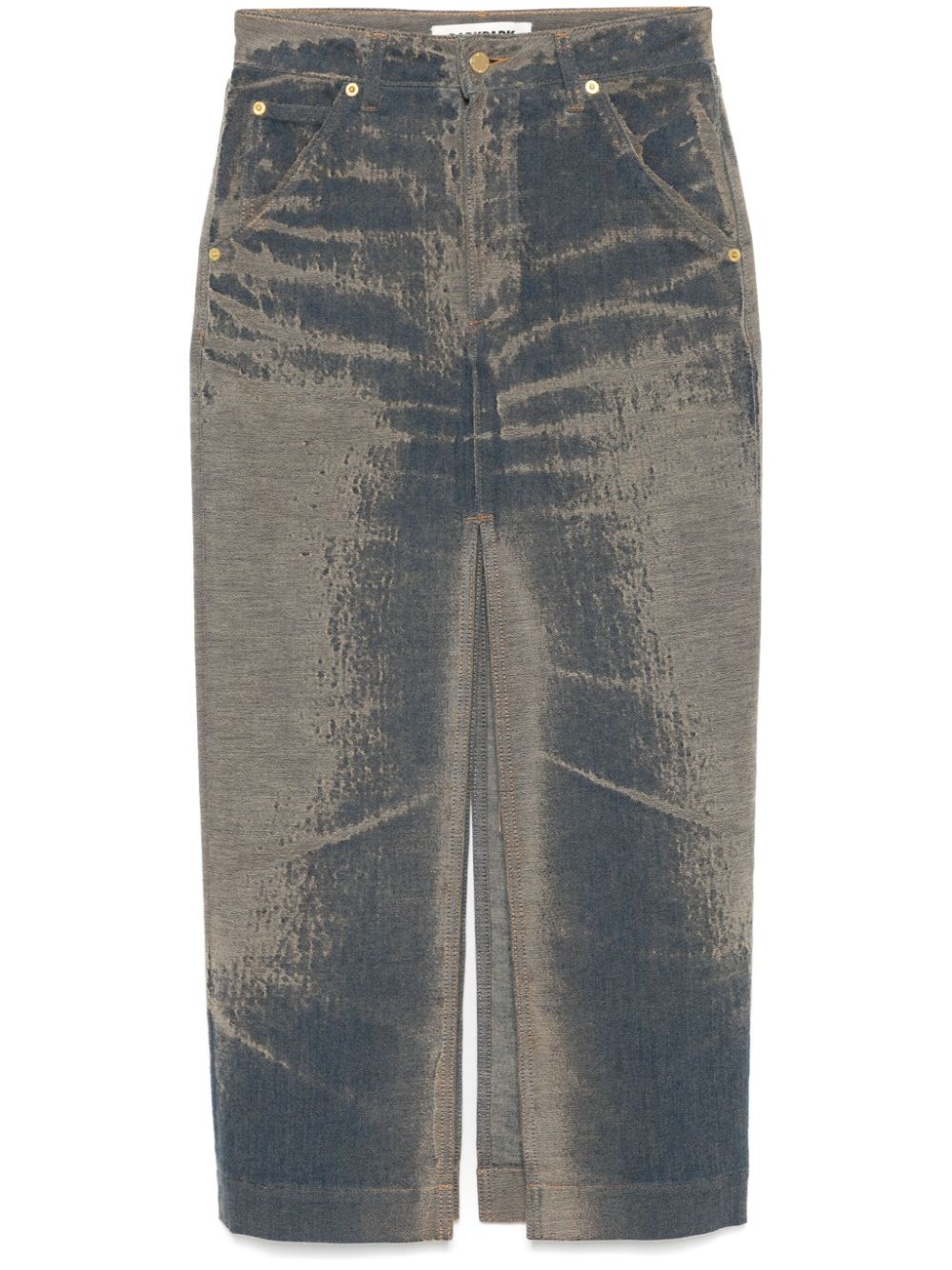 Erika maxi skirt Highlights - Duck egg blue/beige - Denim - Patterned jacquard - Front button and zip fastening - High-waisted - Belt loops - Classic five pockets - Front slit - Logo patch to the rear - Rear slit - Straight hem - Long length Made in Italy Composition Outer: Recycled Polyester 36%, Recycled Cotton 33%, Cotton 30%, Elastane 1% Lining: Polyester 65%, Cotton 35% SIZE & FIT Model measurements Height 5 ft 9 in(1.75 m) Bust/Chest 30.7 in(78 cm) Hips 35.03 in(89 cm) Waist 23.62 in(60 cm) FittingInformation This midi-length skirt is intended to be worn just below the waist The vented hem offers movement at the rear Constructed from stretch denim, this piece offers a stretch fit with durability