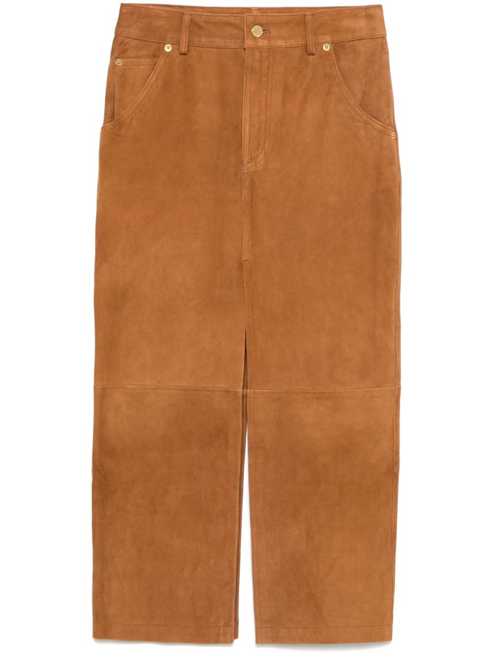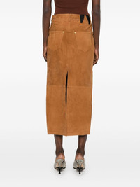 Erika midi skirt Highlights - Camel brown - Concealed fly and button fastening - Classic five pockets - Front slit - Rear slit Made in Italy Composition Lamb Skin 100% SIZE & FIT Model measurements Height 5 ft 11 in(1.8 m) Bust/Chest 32.67 in(83 cm) Hips 36.22 in(92 cm) Waist 24.4 in(62 cm) FittingInformation This midi-length skirt is intended to be worn just below the waist Suede leather has a soft and treated construction offering some flexibility