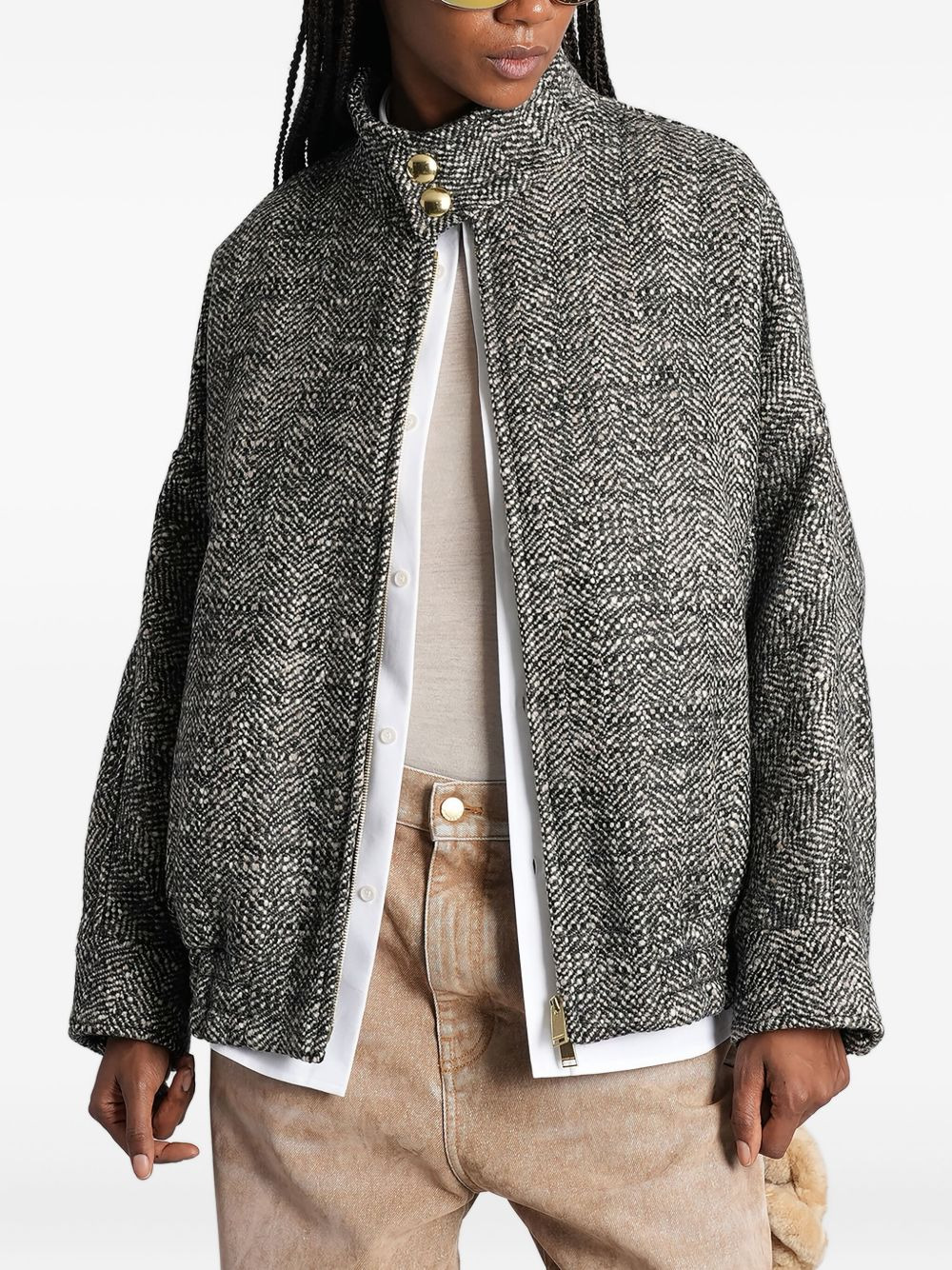 herringbone-pattern bomber jacket Highlights - Grey - Herringbone pattern - High neck - Zip fastening - Gold-tone buttons - Elasticated cuffs - Elasticated hem Imported Composition Fabric 100% Washing instructions Read Manufacturer Guidelines