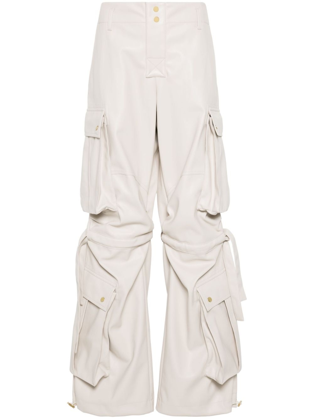 Lilly trousers Highlights - Light beige - Faux leather - Front press-stud fastening - Low-rise - Belt loops - Two side slash pockets - Drop crotch - Multiple cargo pockets - Adjustable knee straps - Rear elasticated waistband - Waist tabs - Two rear patch pockets - Drawstring hem - Full-length - Wide leg Made in Italy Composition Outer: Polyurethane 50%, Polyester 50% Lining: Cotton 100% SIZE & FIT Model measurements Height 5 ft 11 in(1.8 m) Bust/Chest 32.67 in(83 cm) Hips 35.82 in(91 cm) Waist 25.98 in(66 cm) FittingInformation Designed with a wide-leg cut, these trousers allow for a close fit at the waist and offer a loose and roomy fit over the leg Adjust this piece’s waistband to your preference using the drawstring Made from a midweight non-stretch fabric, this piece offers minimal elasticity when worn Washing instructions Machine Wash
