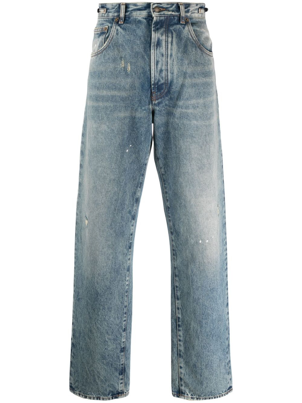 logo-patch straight-leg jeans Highlights - Blue - Cotton - Denim - Logo patch to the rear - Whiskering effect at the thighs - Front button and zip fastening - Belt loops - Classic five pockets - Straight leg Made in Italy Composition Outer: Cotton 100% Lining: Polyester 65%, Cotton 35%