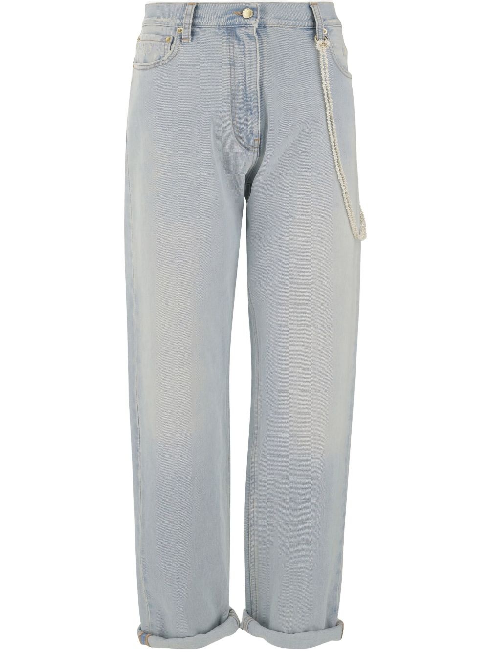Naomi jeans Highlights - Light blue - Concealed fly and button fastening - Classic five pockets - Belt loops - Logo patch to the rear Made in Italy Composition Cotton 100%