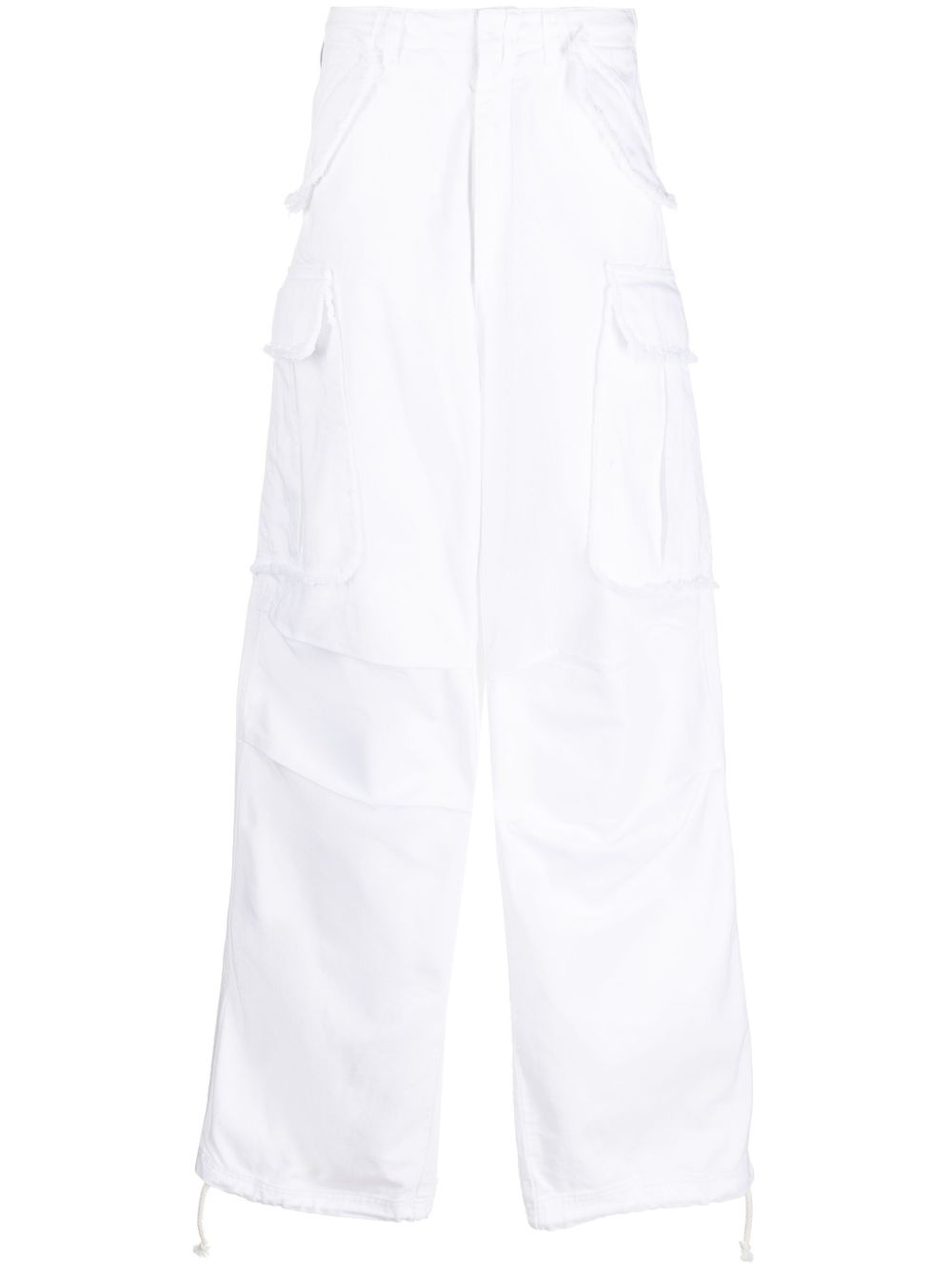 ripped-detail wide-leg trousers white cotton ripped detailing logo patch to the rear two front cargo pockets two front flap pockets two rear flap pockets low-rise extra-long length Made in Italy Composition Cotton 100% SIZE & FIT Model measurements Height 5 ft 10 in(1.79 m) Bust/Chest 33.07 in(84 cm) Hips 35.82 in(91 cm) Waist 24.01 in(61 cm)