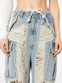 Vivi distressed wide-leg jeans Highlights - Light blue - Cotton - Denim - Light wash - High-waisted - Drawstring waist - Seam detailing - Belt loops - Concealed fly and button fastening - Distressed finish - Two side flap pockets - Two side cargo pockets - Two rear flap pockets - Wide leg Made in Italy Composition Outer: Cotton 100% Lining: Polyester 65%, Cotton 35% SIZE & FIT Model measurements Height 5 ft 11 in(1.8 m) Bust/Chest 33.07 in(84 cm) Hips 37.4 in(95 cm) Waist 25.19 in(64 cm) FittingInformation Designed with a wide leg cut, these jeans allow for a close fit at the waist and offer a loose and roomy fit over the leg Adjust this piece’s waistband to your preference using the drawstring Sturdy and hard-wearing, this denim piece offers no stretch This piece fits true to size – take your usual size