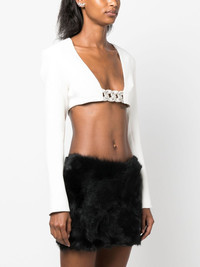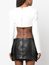 crystal-embellished crop top Highlights - Optical white - Glass crystal embellishment - Cut-out detailing - Plunging square neck - Rear zip fastening - Long sleeves - Straight hem - Cropped Made in United Kingdom Composition Outer: glass 100%, Acetate 52%, Viscose 45%, Elastane 3% Lining: Polyester 97%, Elastane 3% SIZE & FIT Model measurements Height 5 ft 11 in(1.8 m) Bust/Chest 31.49 in(80 cm) Hips 35.82 in(91 cm) Waist 24.8 in(63 cm)