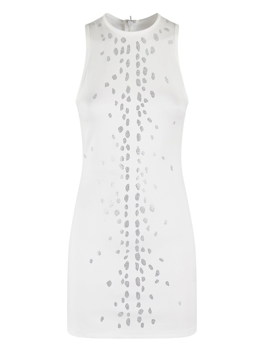 embellished sleeveless dress Highlights - White - Round neckline - Subtle embellishments - Rear zip fastening - Fitted silhouette - Smooth finish Made in United Kingdom Composition glass 100%, Viscose 62%, Polyamide 33%, Elastane 5%
