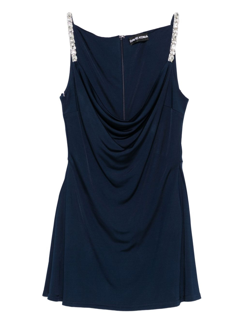 embellished-strap draped dress Highlights - Navy blue - Embellishment at the straps - Draped detailing - Sleeveless - Zip fastening at the back - Mini length Made in United Kingdom Composition Viscose 100% SIZE & FIT Model measurements Height 5 ft 11 in(1.8 m) Bust/Chest 31.49 in(80 cm) Hips 36.61 in(93 cm) Waist 24.4 in(62 cm) Washing instructions Read Manufacturer Guidelines