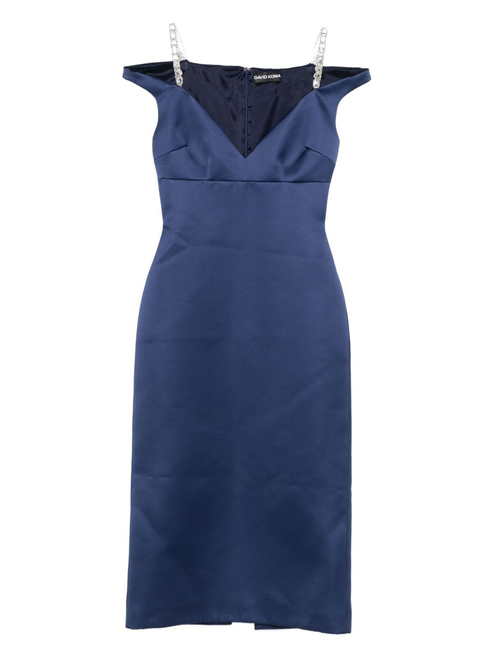 embellished-strap dress Highlights - Navy blue - Embellished straps - V-neck - Concealed rear zip fastening - Sleeveless - Tonal stitching Made in United Kingdom Composition Triacetate 78%, Polyester 22% SIZE & FIT Model measurements Height 5 ft 11 in(1.8 m) Bust/Chest 31.49 in(80 cm) Hips 36.61 in(93 cm) Waist 24.4 in(62 cm) Washing instructions Read Manufacturer Guidelines
