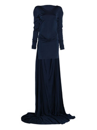knot-detail dress Highlights - Blue - Long sleeves - Knot detail - Train - Round neck Made in United Kingdom Composition Viscose 100% SIZE & FIT Model measurements Height 5 ft 10 in(1.78 m) Bust/Chest 33.46 in(85 cm) Hips 36.22 in(92 cm) Waist 23.22 in(59 cm) Washing instructions Dry Clean Only