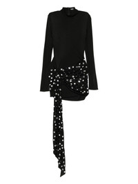 knot embellished dress Highlights - Black - Silver embellishment - Long sleeves - Knot detail - Draped detail - High neck Imported Composition Fabric 100% SIZE & FIT Model measurements Height 5 ft 9 in(1.76 m) Bust/Chest 31.88 in(81 cm) Hips 35.43 in(90 cm) Waist 24.8 in(63 cm) Washing instructions Read Manufacturer Guidelines