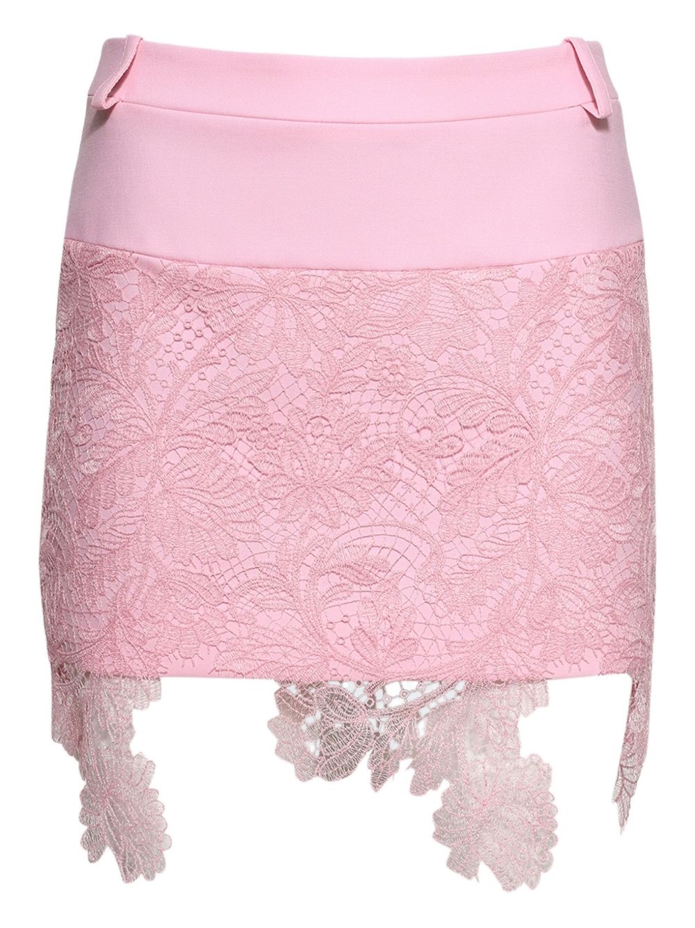 lace mini skirt Highlights - Pale pink - Floral lace pattern - High waist - Asymmetric hemline Made in United Kingdom Composition Fabric 100% Washing instructions Read Manufacturer Guidelines