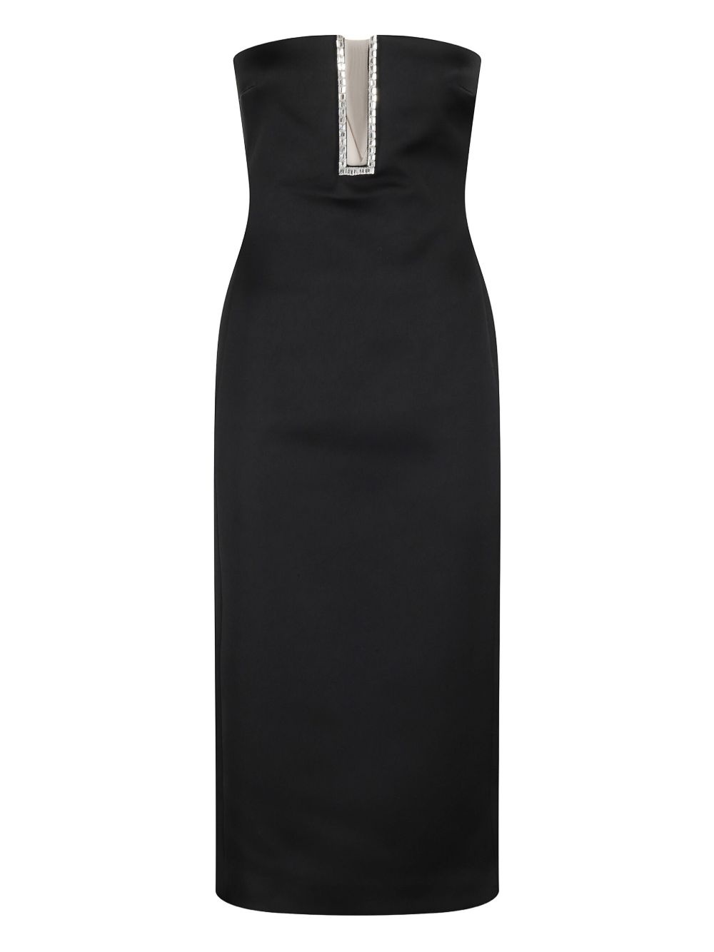 rhinestone-embellished midi dress Highlights - Black - Rhinestone embroidery - Straight neckline - Rectangular cut-out - Back zip fastening - Rear split Made in United Kingdom Composition Triacetate 78%, Polyester 22% Washing instructions Read Manufacturer Guidelines