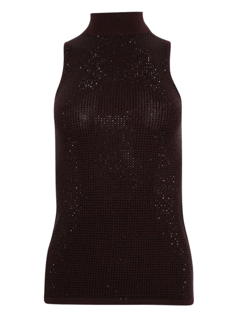 rhinestone-embellished top Highlights - Brown - Cashmere blend - Rhinestone embellishment - High neck - Sleeveless Made in United Kingdom Composition Polyester 100% Washing instructions Read Manufacturer Guidelines