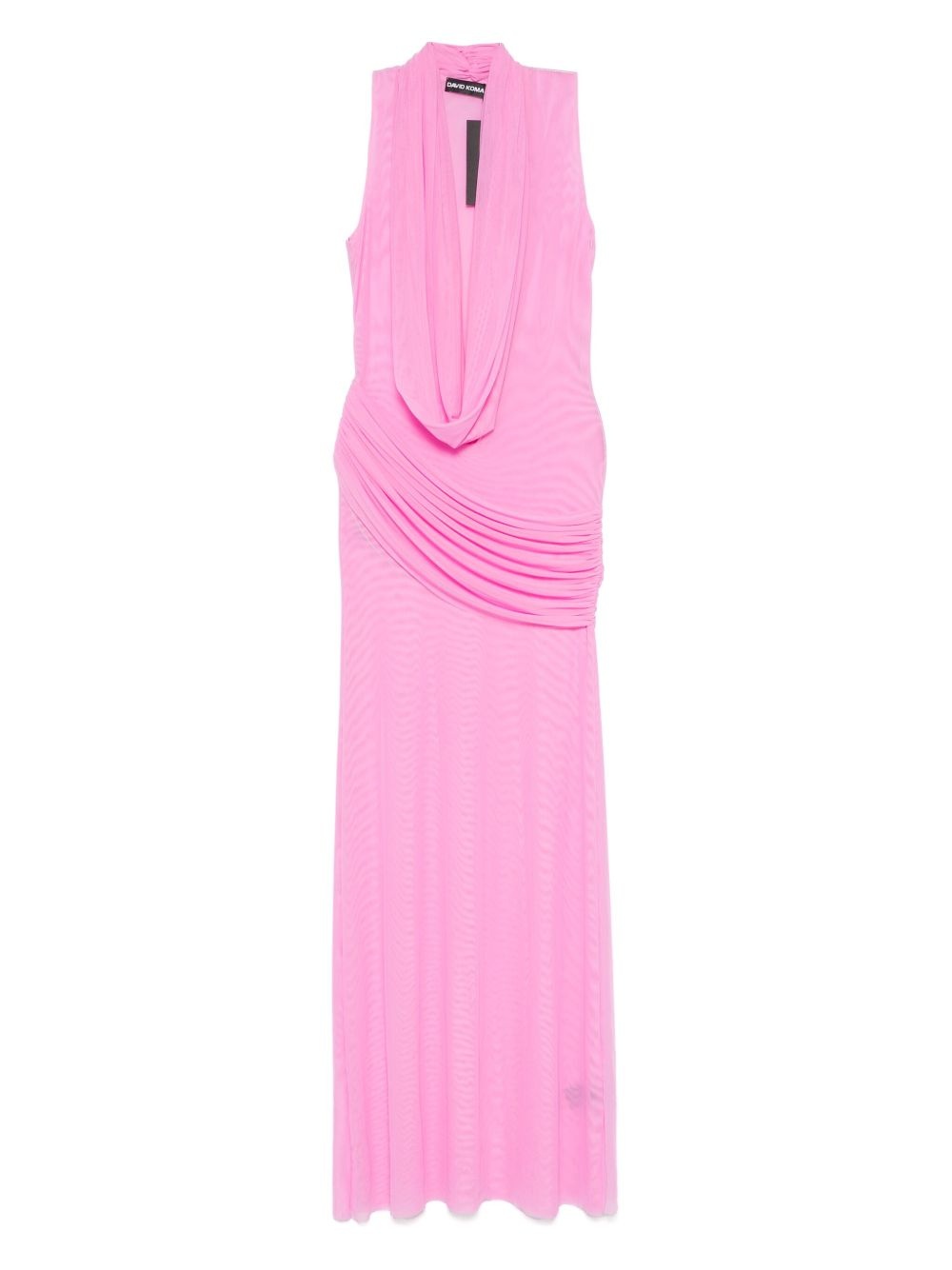 semi-sheer maxi gown Highlights - Pink - Draped detailing - Shawl collar - Sleeveless - Maxi Made in United Kingdom Composition Polyamide 92%, Elastane 8% SIZE & FIT Model measurements Height 5 ft 11 in(1.8 m) Bust/Chest 31.49 in(80 cm) Hips 36.61 in(93 cm) Waist 24.4 in(62 cm) FittingInformation Designed for a slim fit that sits just away from the body offering a close yet comfortable fit Made from a midweight stretch fabric, this piece offers elasticity and flexibility when worn