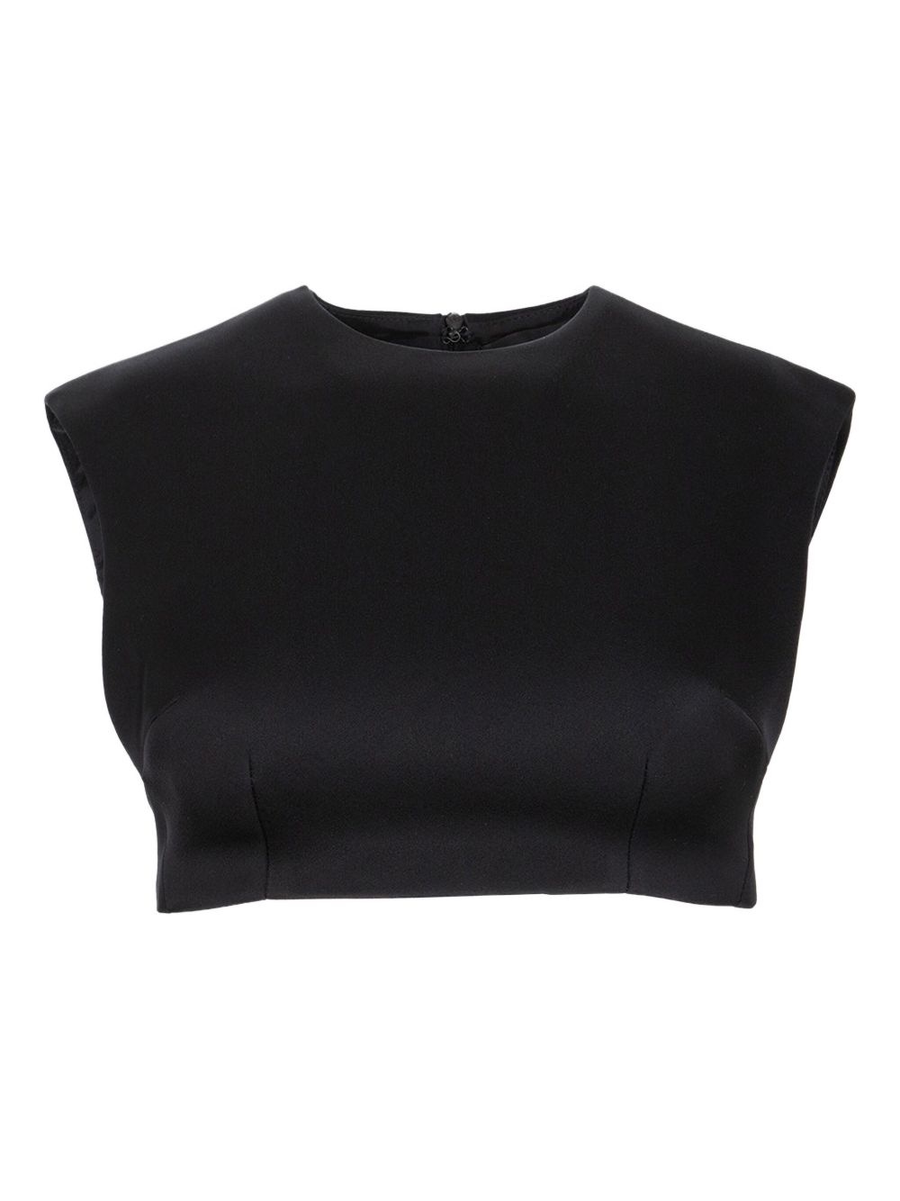sleeveless crop top Highlights - Black - Rear zip fastening - Crew neck Imported Composition Triacetate 78%, Polyester 22% Washing instructions Read Manufacturer Guidelines