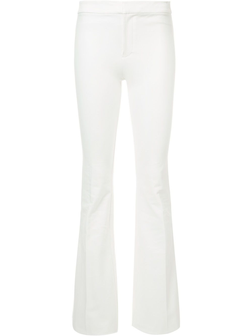 Crosby flared trousers White cotton blend Crosby flared trousers from Derek Lam 10 Crosby featuring a concealed front fastening, a waistband with belt loops, side pockets and a regular length. Imported Composition Cotton 96%, Spandex/Elastane 4% SIZE & FIT Model measurements Height 5 ft 9 in(1.75 m) Bust/Chest 33.85 in(86 cm) Hips 34.64 in(88 cm) Waist 23.62 in(60 cm) Washing instructions Dry Clean Only
