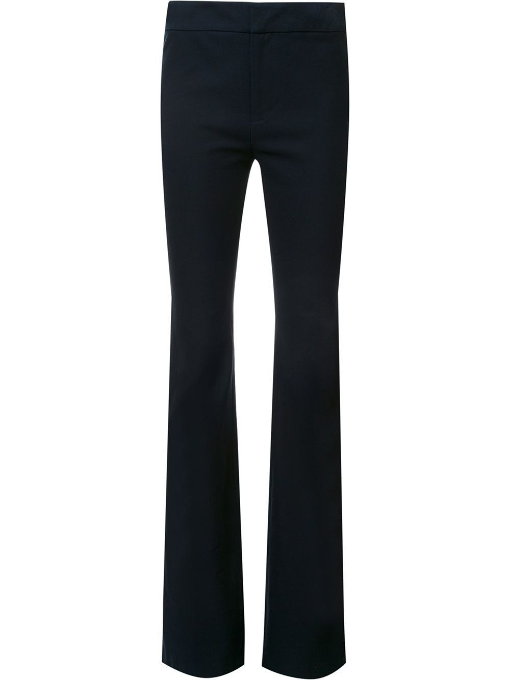 Crosby flared trousers Midnight blue cotton blend Crosby flared trousers from Derek Lam 10 Crosby featuring a concealed front fastening, a waistband with belt loops, side pockets and a regular length. Imported Composition Cotton 96%, Spandex/Elastane 4% SIZE & FIT Model measurements Height 5 ft 11 in(1.8 m) Bust/Chest 31.88 in(81 cm) Hips 35.03 in(89 cm) Waist 25.19 in(64 cm) Washing instructions Dry Clean Only