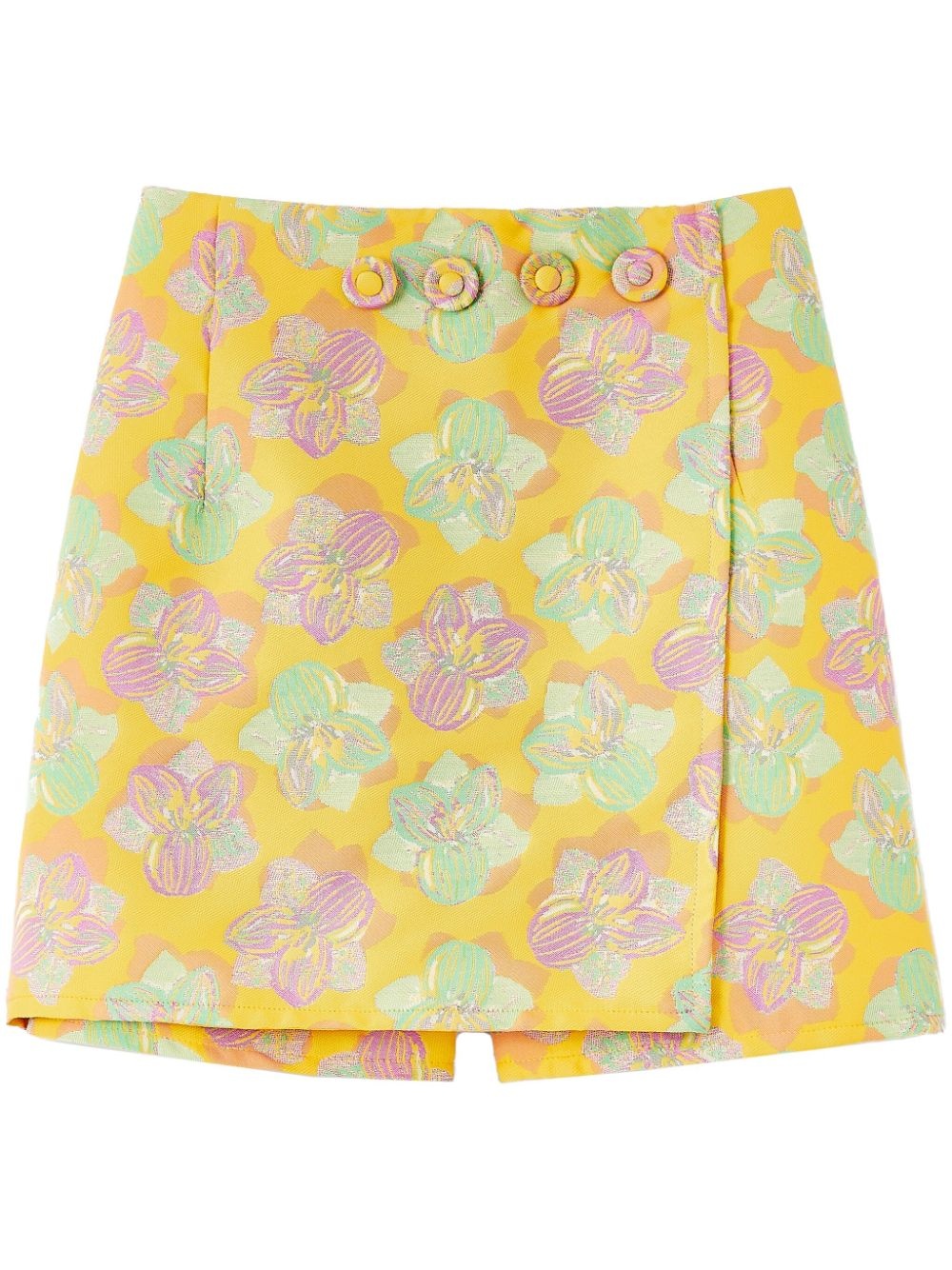 all over floral shorts Highlights - Yellow/pink/green - Cotton blend - All-over floral print - Decorative button detailing - Concealed front fastening - High-rise Imported Composition Polyester 51%, Viscose 26%, Cotton 23%