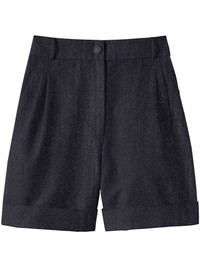 Daniel denim shorts Highlights - Midnight blue - Cotton blend - Denim - Stretch-design - Pleat detailing - High-waisted - Concealed fly and button fastening - Belt loops - Wide leg - Two side slit pockets - Above-knee length - Turn-up hem Imported Composition Cotton 75%, Polyester 24%, Elastane 1%