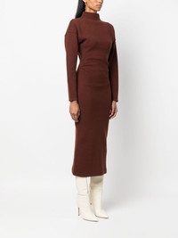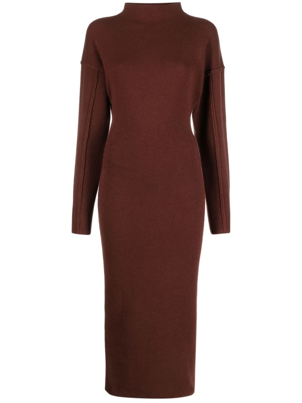 Jade exposed-seam midi dress Highlights - Chocolate brown - Merino-cashmere blend - Exposed-seam detailing - Drop shoulder - Stand-up collar - Long sleeves - Mid-length Imported Composition Merino 90%, Cashmere 10% SIZE & FIT Model measurements Height 5 ft 10 in(1.77 m) Bust/Chest 31.1 in(79 cm) Hips 34.64 in(88 cm) Waist 24.8 in(63 cm) FittingInformation Designed for a close fit throughout Made with a midweight knit, this piece offers some stretch This piece fits true to size – take your usual size