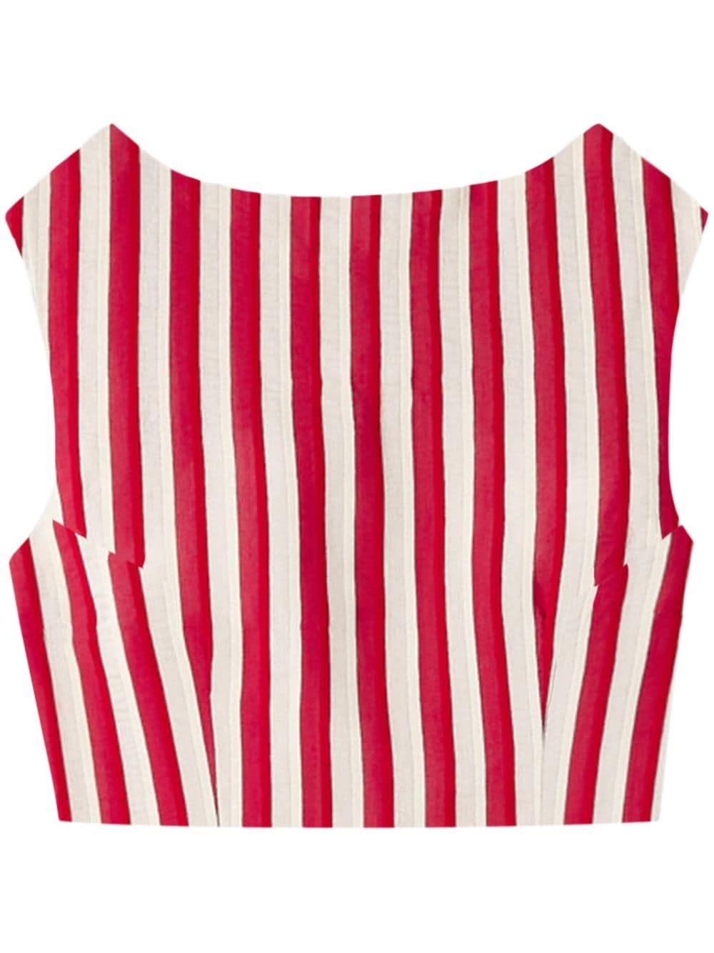 Richard striped crop top Highlights - Ruby red/ecru - Vertical stripe pattern - Round neck - Sleeveless - Cropped - Straight hem Imported Composition Polyester 78%, Cotton 22%