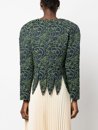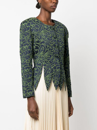 Wade floral-jacquard satin jacket Highlights - Navy blue/olive green - Satin finish - Patterned jacquard - Round neck - Shoulder pads - Long sleeves - Front button fastening - Scallop hem Imported Composition Outer: Polyester 68%, Cotton 26%, Acrylic 6% Lining: Viscose 100% SIZE & FIT Model measurements Height 5 ft 10 in(1.78 m) Bust/Chest 31.49 in(80 cm) Hips 37 in(94 cm) Waist 23.62 in(60 cm) FittingInformation Designed for a slim fit that sits just away from the body offering a close yet comfortable fit The internal shoulder pads offer a structured shape Made from a midweight non-stretch fabric This piece fits true to size – take your usual size
