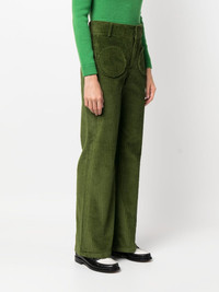 Yoshitomo corduroy trousers Highlights - Khaki green - Cotton - Flared - Corduroy - Velvet effect - Mid-rise - Belt loops - Concealed front fastening - Two rounded pockets to the front Imported Composition Cotton 100% SIZE & FIT Model measurements Height 5 ft 9 in(1.76 m) Bust/Chest 33.07 in(84 cm) Hips 34.64 in(88 cm) Waist 25.59 in(65 cm) FittingInformation Designed with a flared hem, these trousers allow for a close fit at the waist with a slim fit over the leg and widening towards the hem Made from a midweight non-stretch fabric This piece fits small – take one size up Washing instructions Dry Clean Only