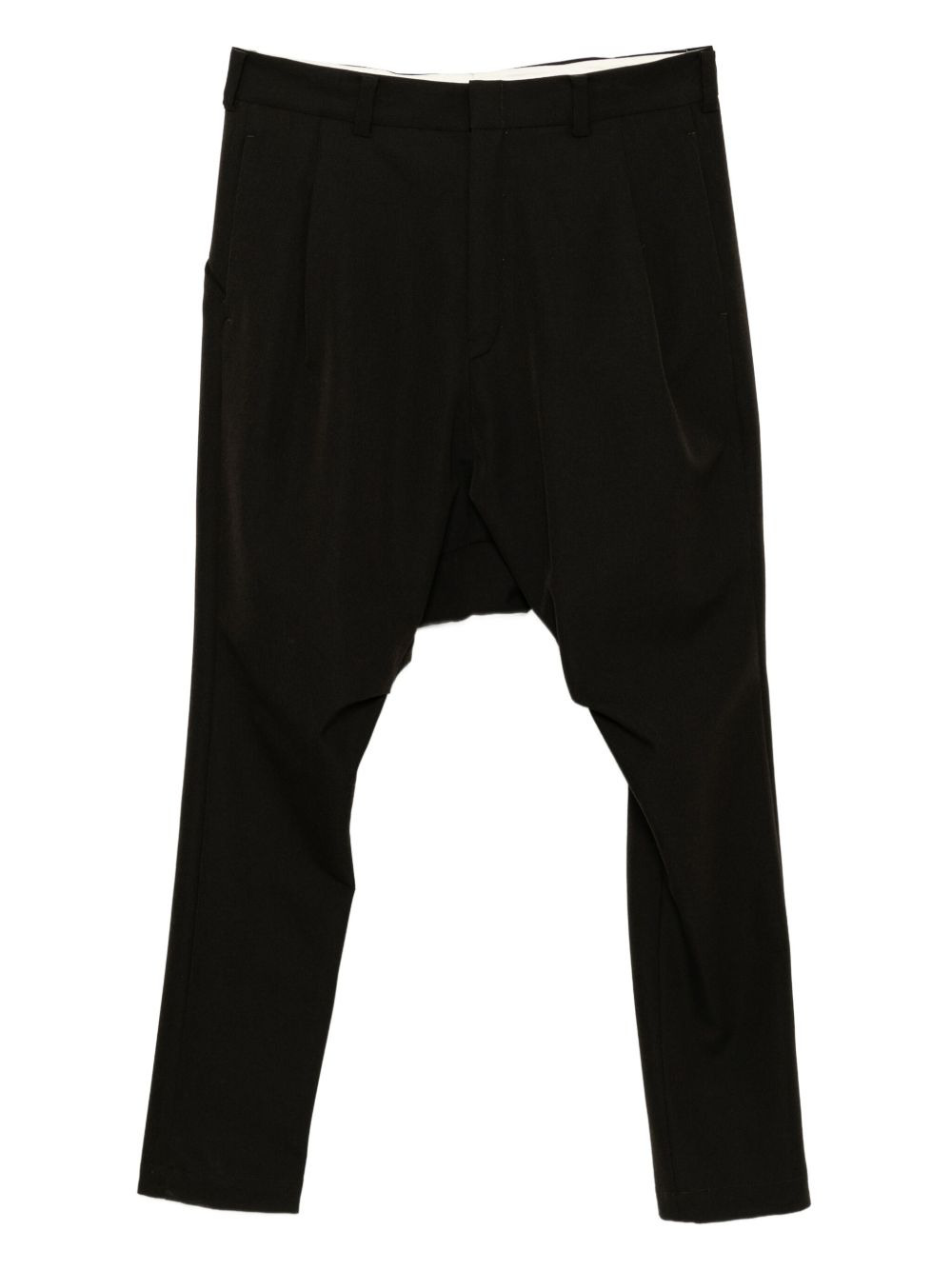drop-crotch wool trousers Highlights - Dark brown - Concealed front button, hook and zip fastening - Two side inset pockets - Rear slit pocket - Belt loops Imported Composition Lining: Polyester 100% Outer: Virgin Wool 100% Washing instructions Dry Clean Only