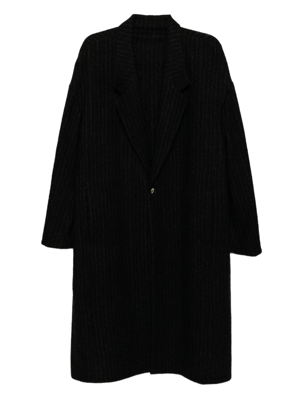 pinstripe wool coat Highlights - Black - Pinstripe pattern - Single-breasted closure - Long sleeves - Buttoned cuffs Imported Composition Merino 100% SIZE & FIT Model measurements Height 6 ft 2 in(1.87 m) Bust/Chest 33.07 in(84 cm) Hips 35.43 in(90 cm) Waist 26.77 in(68 cm) FittingInformation Designed to be unstructured, offering a loose fit throughout Made from a midweight non-stretch fabric Washing instructions Dry Clean Only