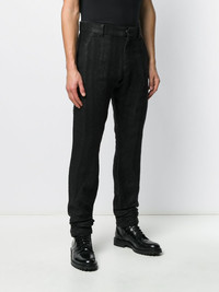 striped straight-leg trousers Black linen blend striped straight-leg trousers from Devoa featuring a waistband with belt loops, a concealed fastening, a striped pattern, a regular length and a straight fit. Imported Composition Polyester 100%, Linen/Flax 50%, Camel Hair 50% SIZE & FIT Model measurements Height 6 ft 2 in(1.87 m) Bust/Chest 37.79 in(96 cm) Hips 37.79 in(96 cm) Waist 30.31 in(77 cm) FittingInformation This piece fits true to size. We recommend you get your regular size Cut for a slim fit Made with a mid-weight non-stretch fabric Washing instructions Dry Clean Only
