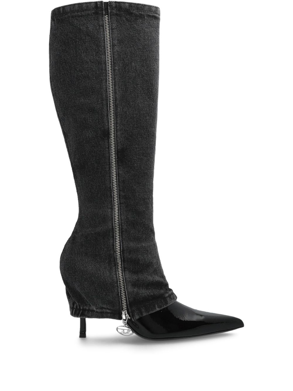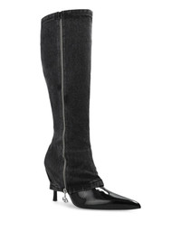 100mm D-Venus Twisted boots Highlights - Black - Side zip fastening - High stiletto heel - Leather outsole - Pointed toe Made in Italy Composition Outer: Cotton 100%, Calf Leather 100% Sole: Calf Leather 100% Lining: Fabric 100% SIZE & FIT Measurement HEEL 3.93 in(10 cm)