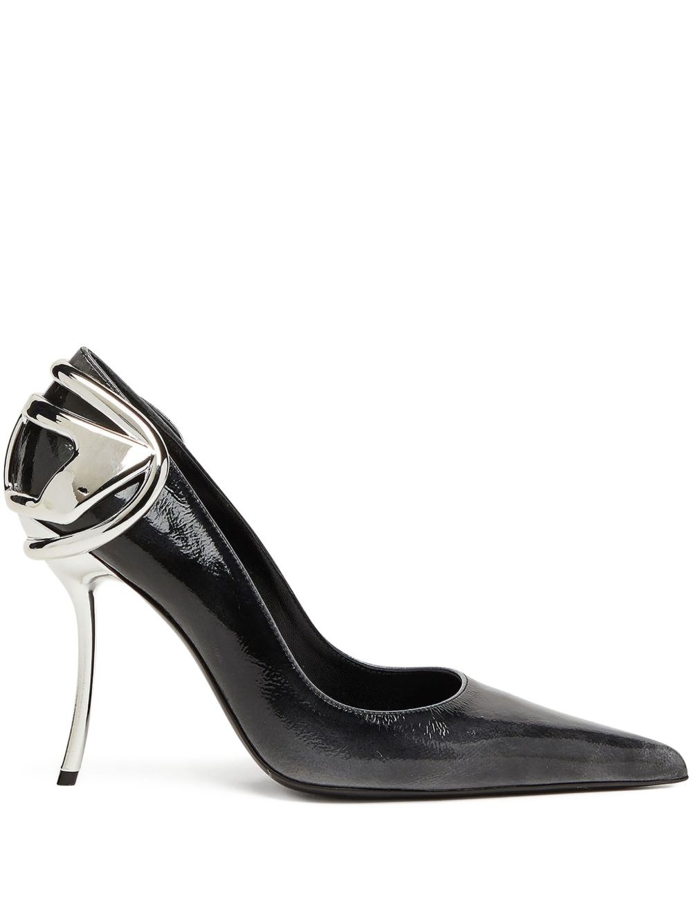 105mm D-Ten&Half pumps Highlights - Black - Slip-on style - Pointed toe - Branded insole - Stiletto heel Made in Italy Composition Lining: Calf Leather 100% Outer: Bovine Leather (top grain) 78%, Thermoplastic 22% Sole: Calf Leather 100%