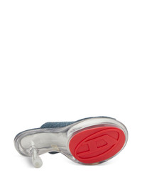 120mm D-Lake denim platform sandals Highlights - Blue - Denim upper - Platform sole - Stiletto heel - Open toe - Clear heel Imported Composition Sole: Rubber 100% Outer: Cotton 100% Lining: Calf Leather 100% SIZE & FIT Measurement HEEL 4.72 in(12 cm) PLATFORM 1.18 in(3 cm)