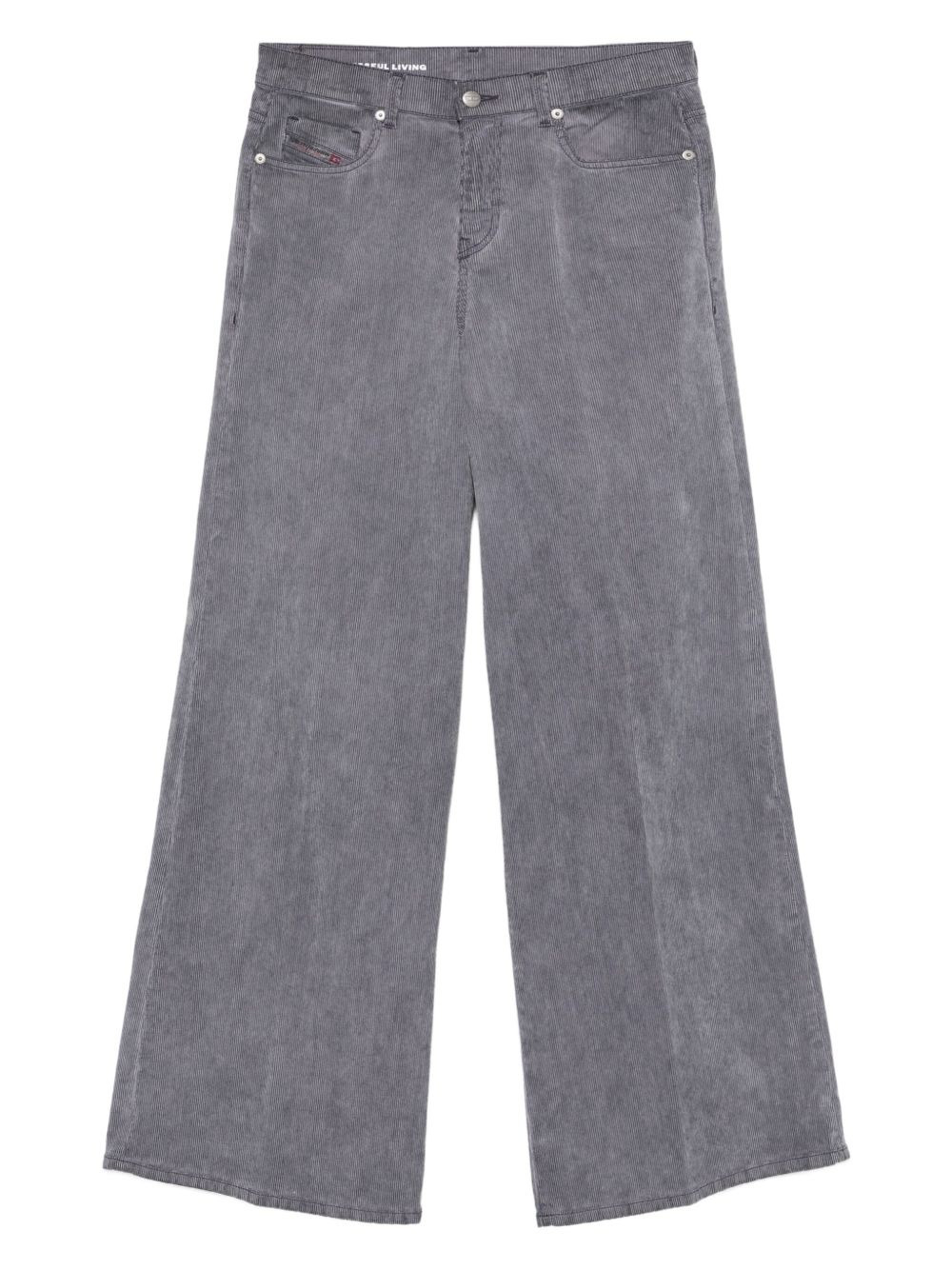 1978 d-akemi 068sd flare-leg jeans Highlights - Grey - Corduroy texture - Wide leg - Front pockets - Button fly - Belt loops Imported Composition Cotton 98%, Elastane 2% SIZE & FIT Model measurements Height 5 ft 10 in(1.77 m) Bust/Chest 33.07 in(84 cm) Hips 37 in(94 cm) Waist 24.8 in(63 cm) Washing instructions Machine Wash