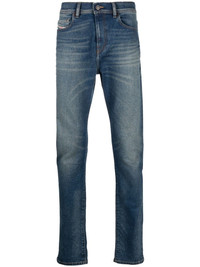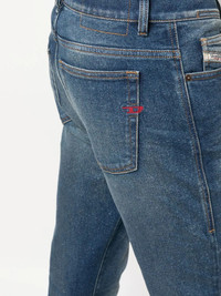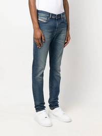 1983 low-rise slim-cut jeans Highlights - 1983 low-rise slim-cut jeans from diesel featuring indigo blue, cotton blend, whiskering effect, embroidered logo, low-rise, slim cut, front button and zip fastening and classic five pockets. . Made in Italy Composition Cotton 89%, Polyester 10%, Spandex/Elastane 1% SIZE & FIT Model measurements Height 6 ft 2 in(1.89 m) Bust/Chest 35.43 in(90 cm) Hips 38.58 in(98 cm) Waist 27.95 in(71 cm) FittingInformation This piece fits true to size. We recommend you get your regular size Cut for a close fit Made with a mid-weight stretch fabric Washing instructions Machine Wash