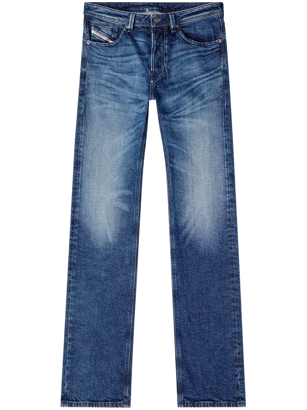 1985 Larkee 09L51 straight jeans Highlights - Blue - Concealed fly and button fastening - Belt loops - Classic five pockets - Whiskering effect Made in Italy Composition Cotton 99%, Elastane 1%