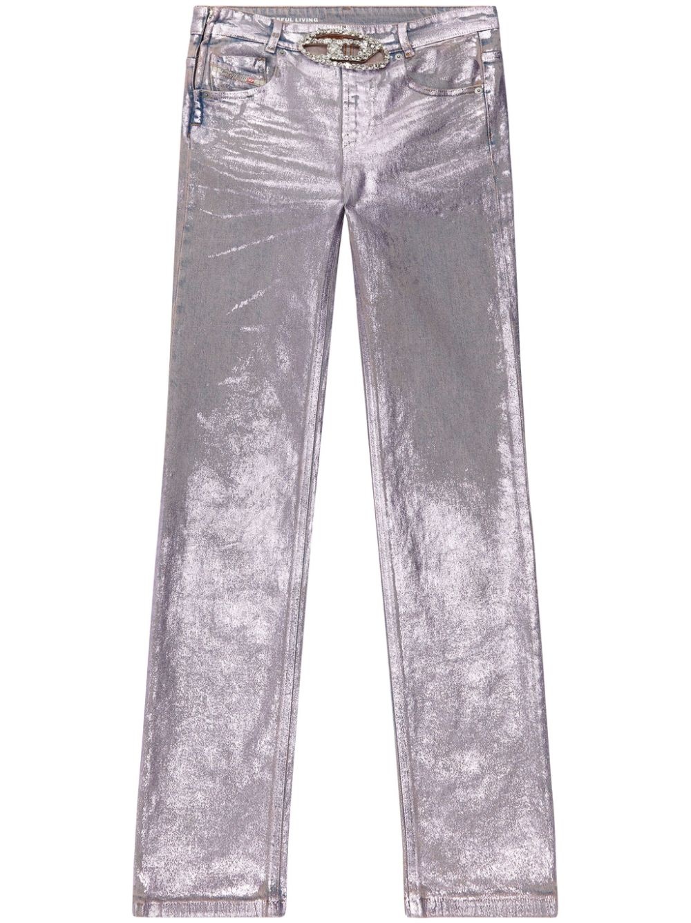 1989 D-Mine straight-leg jeans Highlights - Silver-tone - Cotton blend - Denim - Stretch-design - Metallic effect - Oval d logo plaque - Crystal embellishment - Logo patch to the front - Belt loops - Concealed fly and button fastening - Classic five pockets Made in Italy Composition Cotton 79%, Hemp 20%, Elastane 1%