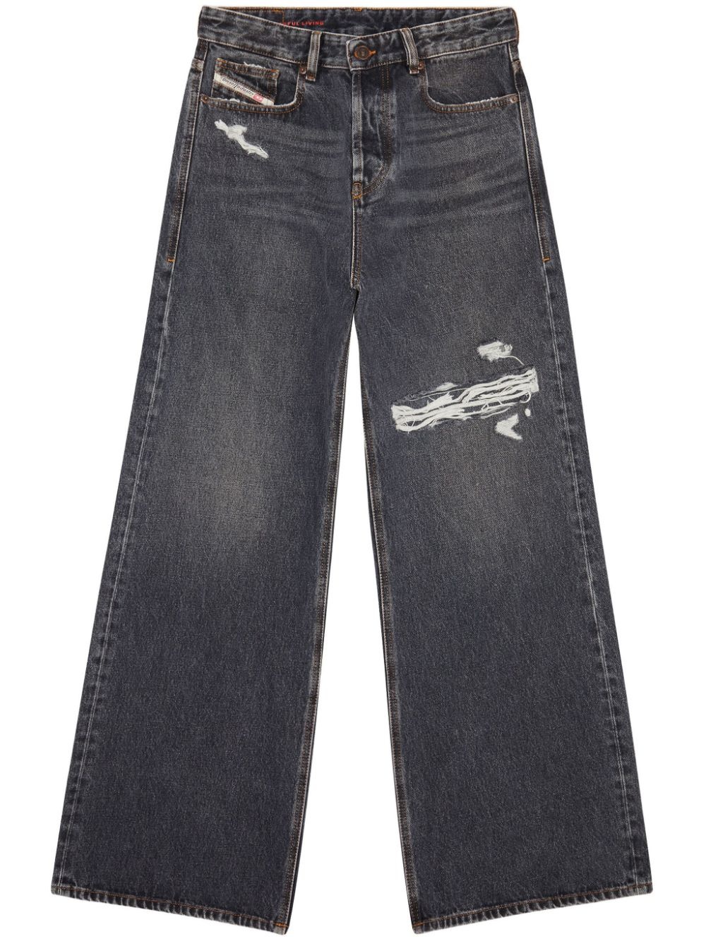 1996 D-Sire 007F6 straight-leg jeans Highlights - Charcoal grey - Cotton - Distressed finish - Wide leg - Low-rise - Front button and zip fastening - Classic five pockets - Belt loops Imported Composition Cotton 100%
