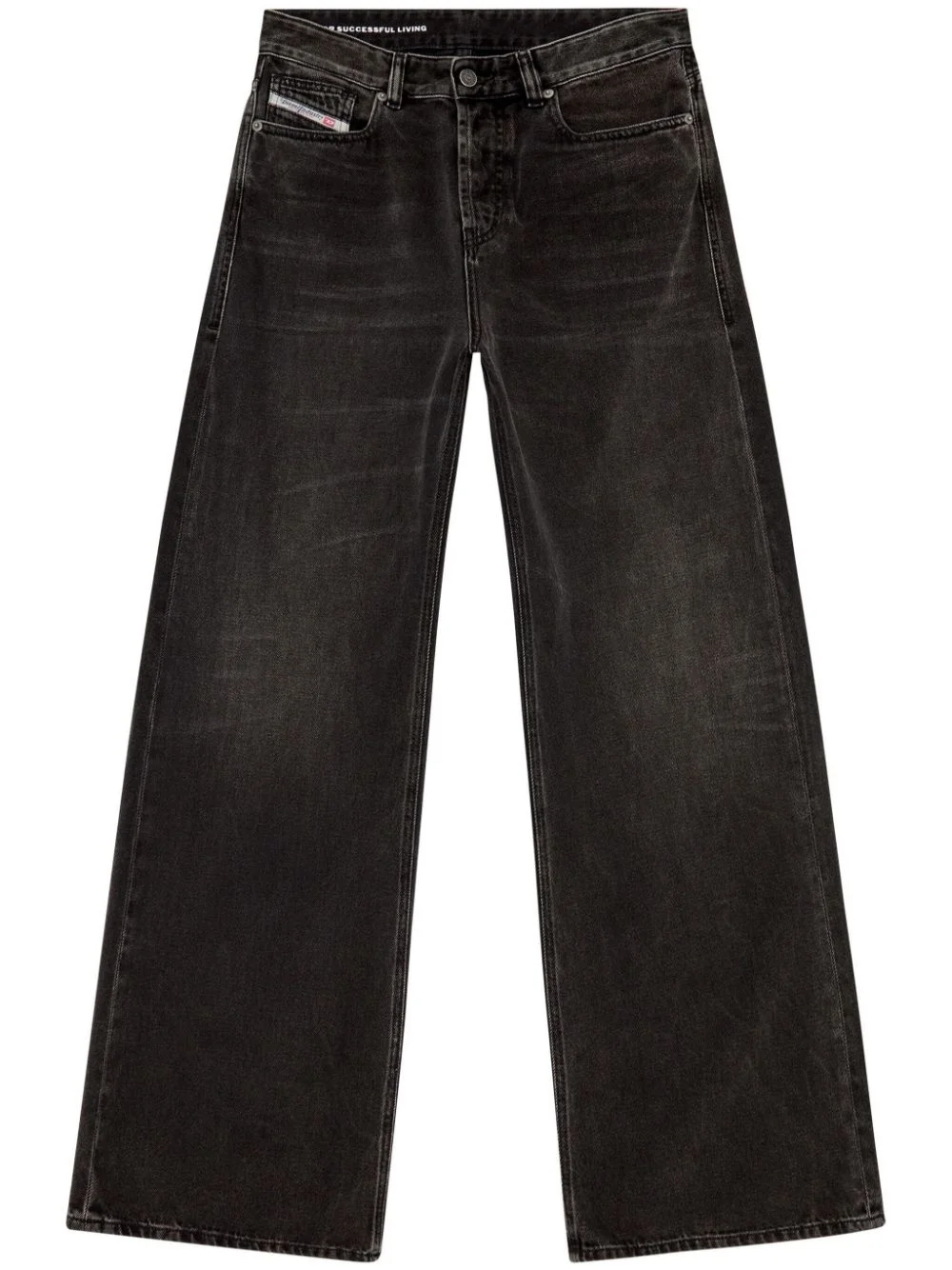 1996 D-Sire low-rise wide-leg jeans Highlights - Black - Cotton - Denim - Logo tag - Logo patch to the rear - Low-rise - Belt loops - Concealed fly and button fastening - Classic five pockets - Wide leg Made in Italy Composition Cotton 62%, Recycled Cotton 38%