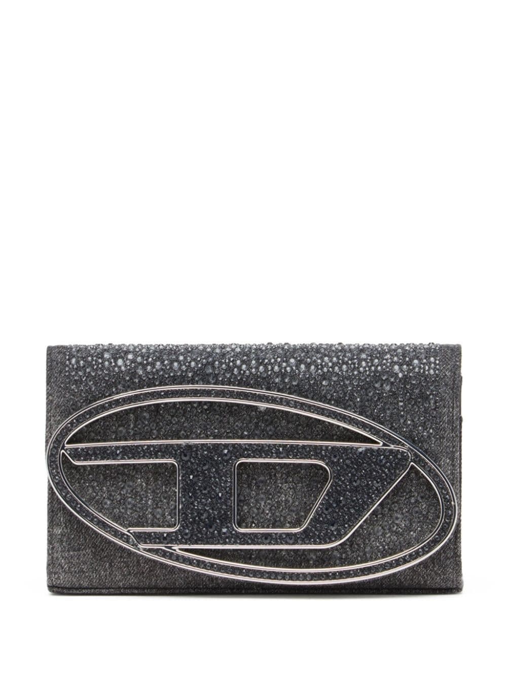 1DR crystal embellished denim wallet Highlights - Black - Cotton/leather - Denim - Crystal embellishment - Logo plaque - Adjustable detachable shoulder strap - Internal zip-fastening pocket Imported Composition Outer: Cotton 90%, Calf Leather 10%