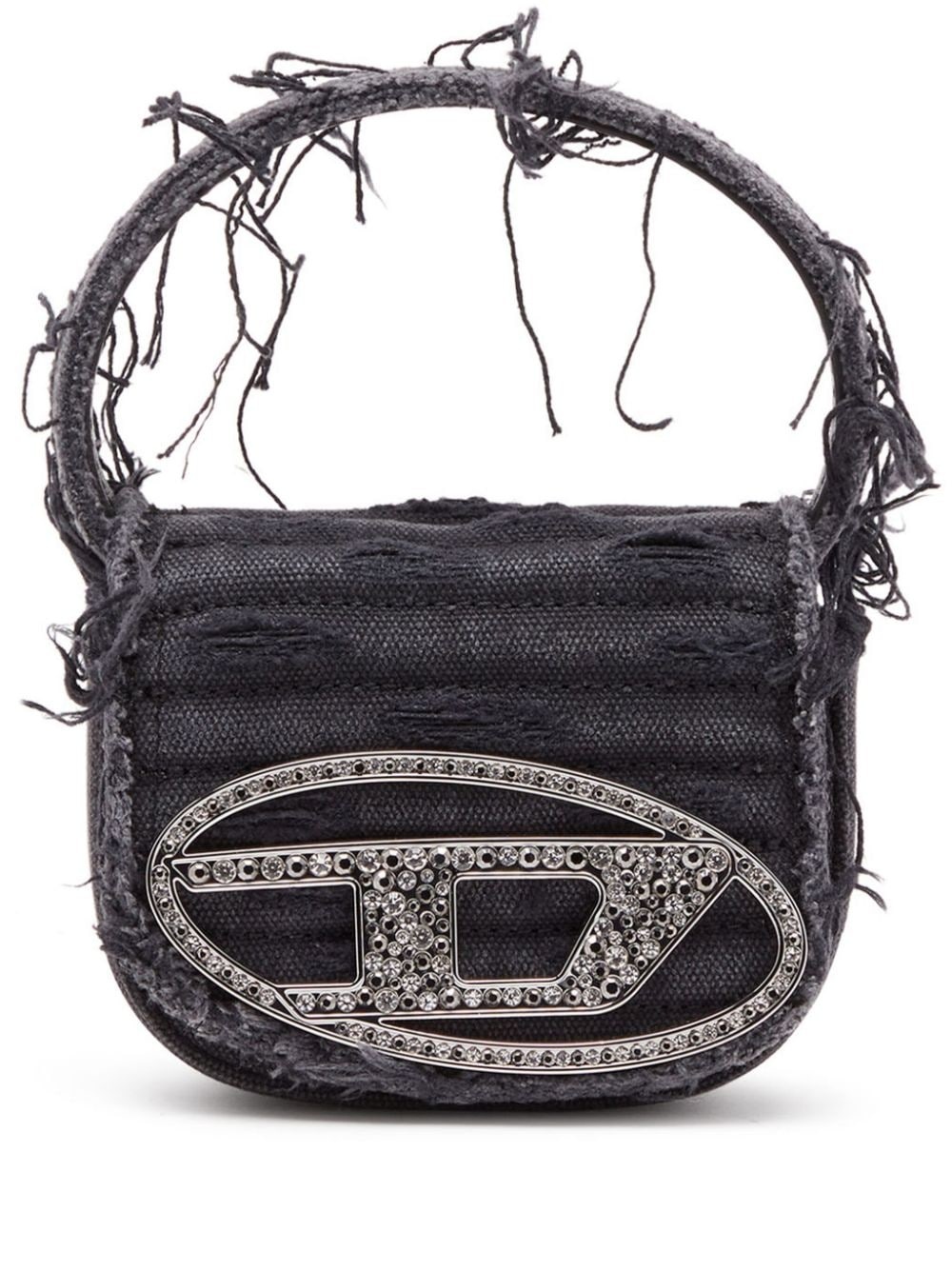 1DR XS distressed cross body bag Designed in an extra-small size, the 1DR shoulder bag from Diesel arrives in a denim iteration. Reflective of the brand's irreverent DNA, it boasts a distressed finish. The signature Oval D hardware is encrusted with sparkling rhinestones. Highlights - Black - Denim - Distressed finish - Oval d logo plaque - Rhinestone embellishment - Single top handle - Adjustable detachable shoulder strap - Foldover top - Main compartment Imported Composition Outer: Cotton 90%, Calf Leather 10%