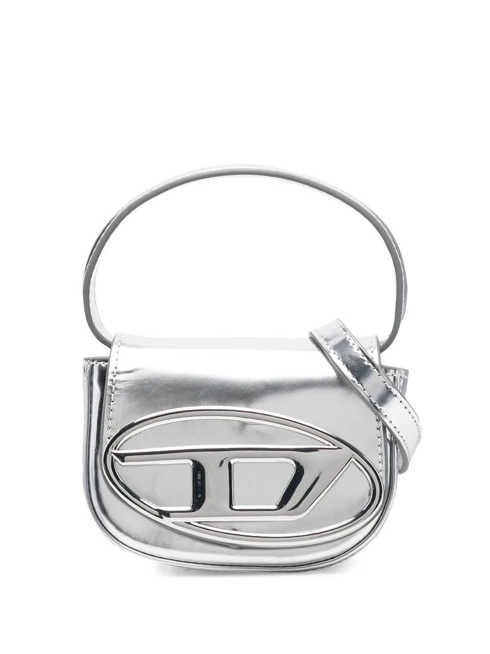 1DR-XS-S mini bag Designed in mini size, this metallic 1DR-XS-S from Diesel arrives in a silver hue. Emblazoned with the brand's signature D logo to the front, the compact size sports a rounded top handle and adjustable crossbody strap. Highlights - 1dr-xs-s logo plaque metallic mini bag from diesel featuring silver, calf leather, metallic finish, tonal logo plaque, foldover top with magnetic fastening, single circular top handle, adjustable detachable shoulder strap and main compartment. Imported Composition Outer: Calf Leather 100%, Brass 100%, Iron 100%, Zinc 100% SIZE & FIT Model measurements Height 5 ft 11 in(1.8 m) Bust/Chest 31.49 in(80 cm) Hips 35.82 in(91 cm) Waist 24.8 in(63 cm) Measurement DEPTH 1.96 in(5 cm) HANDLE 2.75 in(7 cm) HEIGHT 3.54 in(9 cm) STRAP 19.68 in(50 cm) WIDTH 4.92 in(12.5 cm)