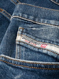 2005 D-Fining 007L1 tapered jeans Highlights - Indigo blue - Cotton-hemp blend - Stonewashed - Logo patch to the side - Belt loops - Front button fastening - Classic five pockets - Tapered leg Imported Composition Cotton 79%, Hemp 20%, Spandex/Elastane 1% SIZE & FIT Model measurements Height 6 ft 2 in(1.87 m) Bust/Chest 38.18 in(97 cm) Hips 36.61 in(93 cm) Waist 29.13 in(74 cm) FittingInformation This piece fits true to size. We recommend you get your regular size Cut for a slim fit Made with a mid-weight stretch fabric Washing instructions Machine Wash
