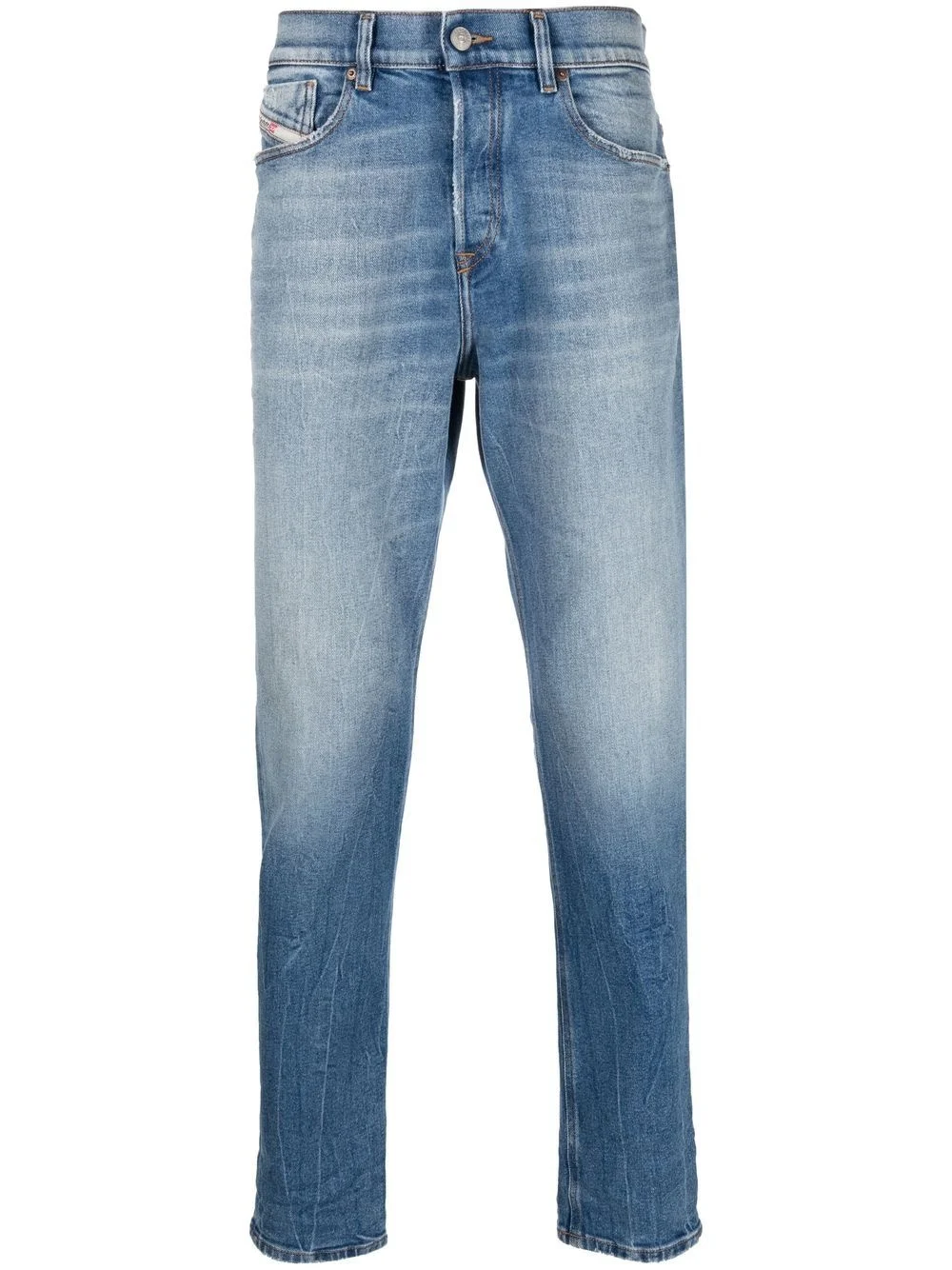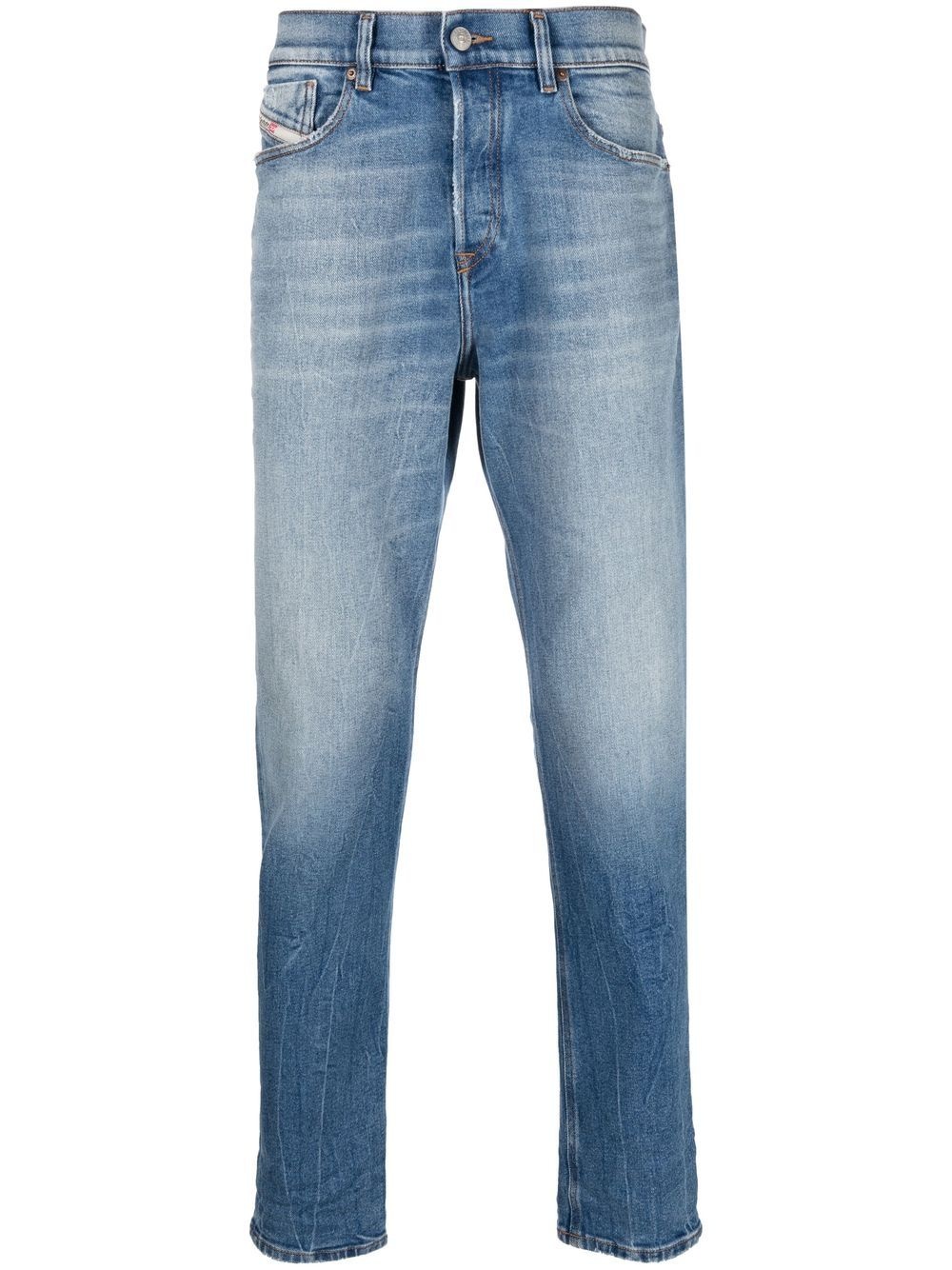 2005 D-Fining tapered-leg jeans light blue cotton blend stonewashed logo print to the side embroidered logo to the rear belt loops front button and zip fastening classic five pockets tapered leg Made in Italy Composition Cotton 99%, Spandex/Elastane 1% SIZE & FIT Model measurements Height 6 ft 2 in(1.87 m) Bust/Chest 38.18 in(97 cm) Hips 36.61 in(93 cm) Waist 29.13 in(74 cm) FittingInformation This piece fits true to size. We recommend you get your regular size Cut for a slim fit Made with a mid-weight stretch fabric