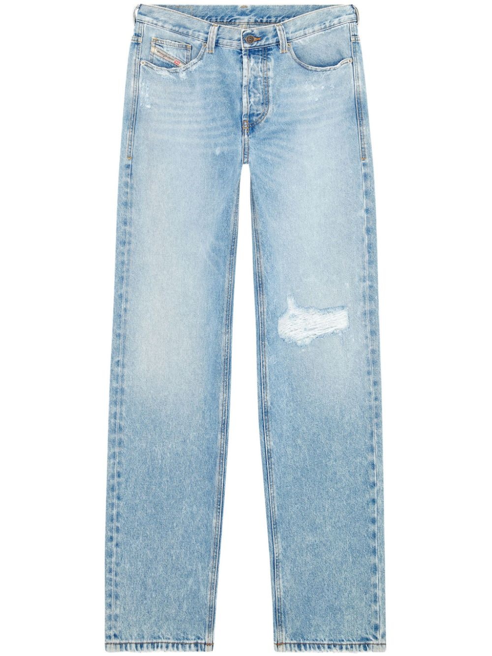 2010 D-Macs 09J80 straight-leg jeans Highlights - Light blue - Organic cotton - Washed denim - Whiskering effect - Applique logo - Ripped detailing - Straight leg - Concealed fly and button fastening - Classic five pockets - Belt loops - Straight hem Made in Italy Composition Organic Cotton 100%