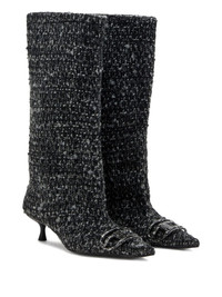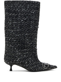 40mm D-venus pointed-toe boots Highlights - Black and grey - Tweed texture - Pointed toe - Kitten heel - Buckle embellishment - Knee-high shaft Made in Italy Composition Outer: Polyester 38%, Acrylic 36%, Cotton 14%, Wool 11%, Other fibres 1% Sole: Calf Leather 100% Lining: Fabric 100% SIZE & FIT Measurement HEEL 1.57 in(4 cm)